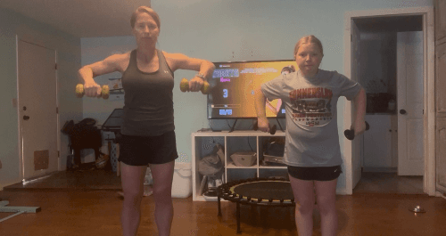 This workout is a height weight (3-5 lb) arm workout. We will work all parts of the arm with a shoulder, bicep, and tricep section. Each section has 5 moves repeated 2x for 30 on, 10 off. Let’s get those arms ready for summer!
