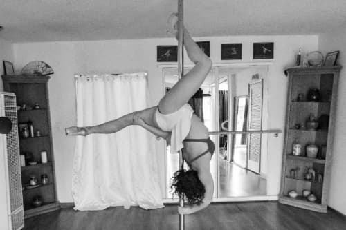 A Valentine's day themed pole combo with transitions between "Valentine's" moves (e.g., Cupid, Eros, etc.)